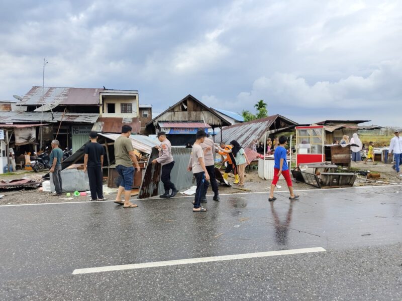 Pihak kepolisian bersama aparatur gampong dan masyarakat saat ini tengah membantu proses pembersihan puing dan memperbaiki atap rumah warga yang terdampak.
