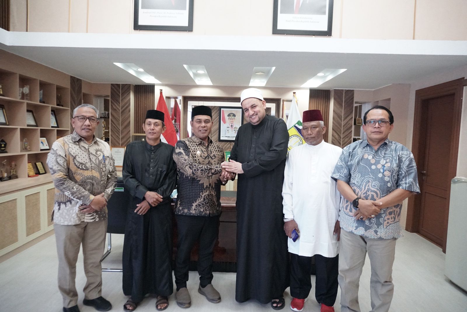 Jantho. RU – Bupati Aceh Besar Muharram Idris menyambut kunjungan Duta Perwakilan Palestina Syekh Dr Samih Kamel Hajjaj di Ruang Kerjanya, Kota Jantho, Kamis (24/07/2025).