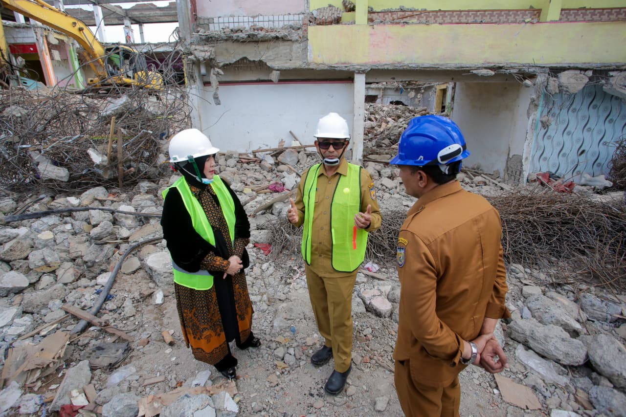 Wali Kota Banda Aceh Illiza Sa'aduddin Djamal saat meninjau ke lokasi Pembongkaran eks gedung Pasar Aceh Shopping Center. Selasa 16 September 2025. [Foto Dok: Humas Banda Aceh/rahasiaumum.com].