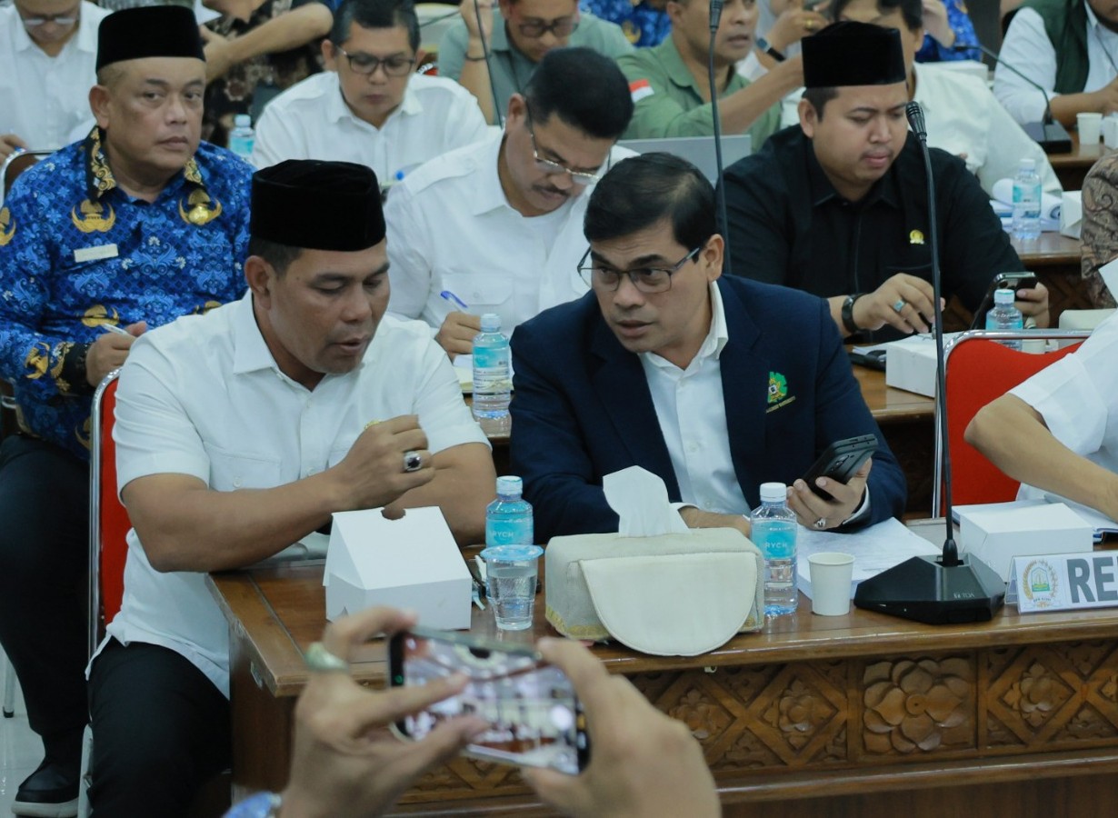 Bupati Aceh Besar H. Muharram Idris menghadiri RDPU terhadap Raqan Aceh tentang RTRW Aceh tahun 2025–2045 di Ruang Serbaguna DPR Aceh. Rabu 17 September 2025. [Foto Dok: MC Aceh Besar/rahasiaumum.com].