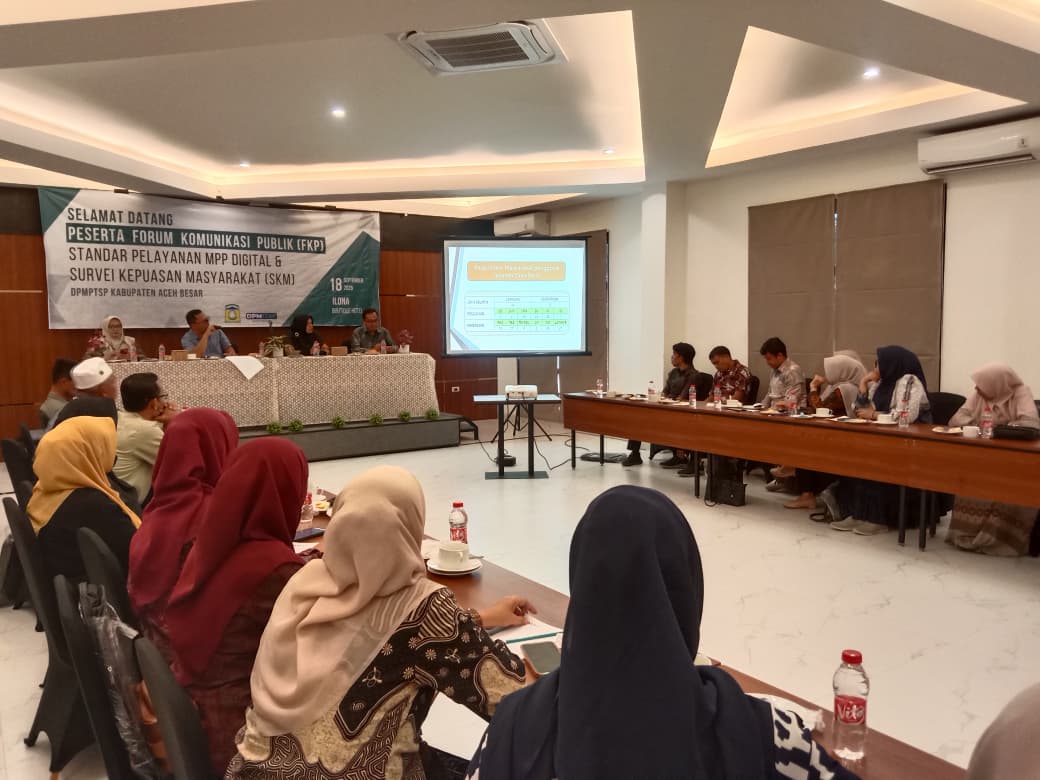 Hal itu sebagaimana disampaikan Kepala Dinas Penanaman Modal Pelayanan Terpadu Satu Pintu (DMPTSP) Aceh Besar Agus Husni SP, saat membuka Forum Konsultasi Publik (FKP) Standar Pelayanan MPP Digital dan Survey Kepuasan Masyarakat, di Hotel Ilona, Kecamatan Ingin Jaya, Aceh Besar, Kamis (18/09/2025).