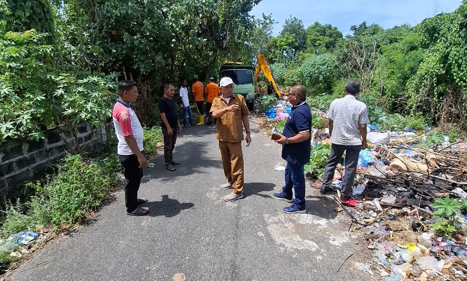 Kepala DLH Aceh Besar Muwardi SH memantau langsung tim DLH mengangkut sampah-sampah yang menumpuk di gampong Monikeun, kecamatan Lhoknga. Selasa 23 September 2025. [Foto Dok: MC Aceh Besar/rahasiaumum.com].
