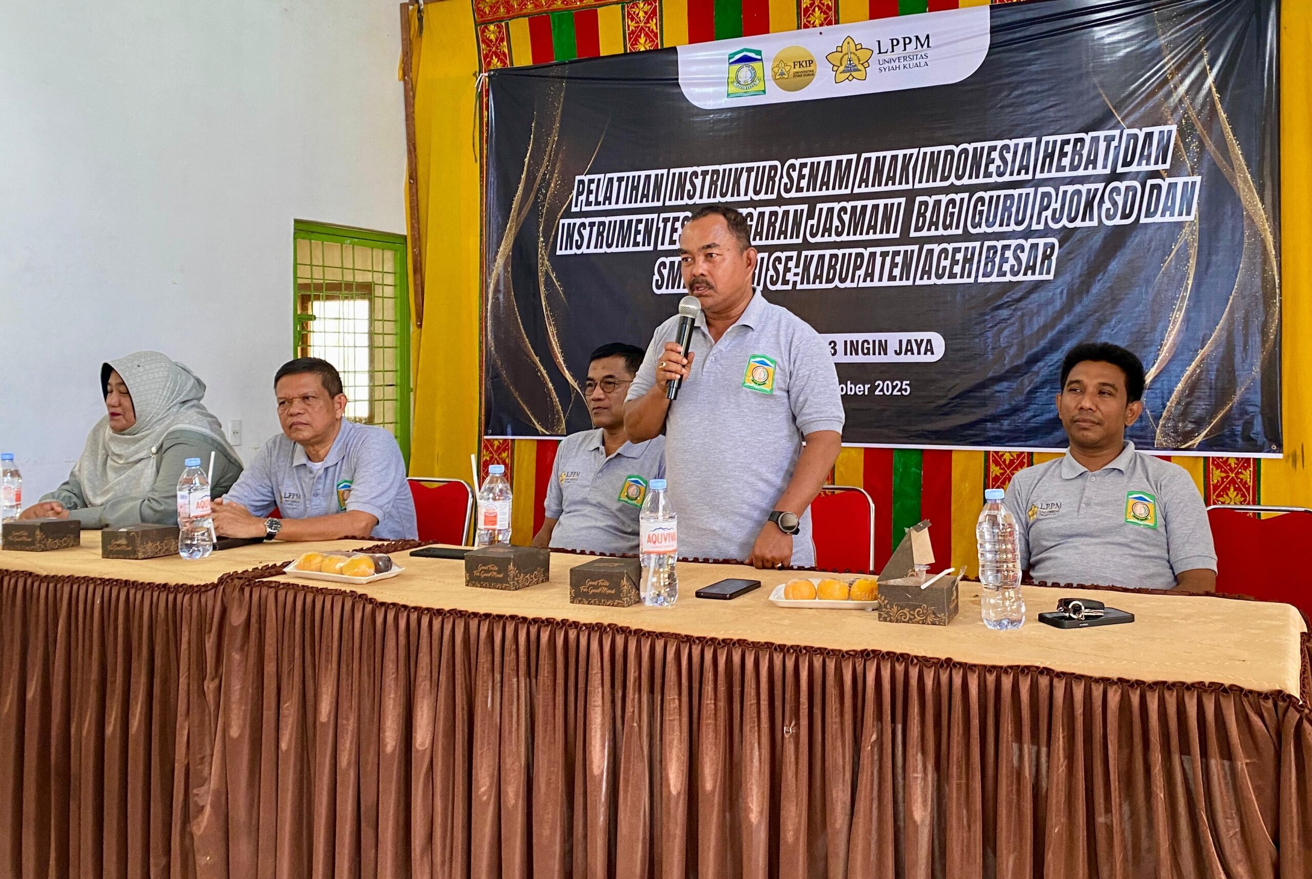 Dekan FKIP USK, Dr. Syamsulrizal, M.Kes., menjelaskan bahwa kegiatan ini merupakan bagian dari pengabdian masyarakat dan berlangsung selama tiga hari dengan peserta guru PJOK dari seluruh SD dan SMP Negeri di Aceh Besar.