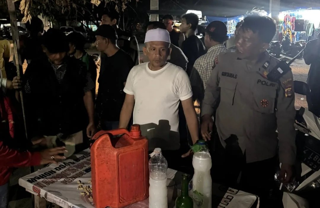 Selain pasangan tersebut, petugas juga menemukan minuman keras jenis tuak di lokasi.