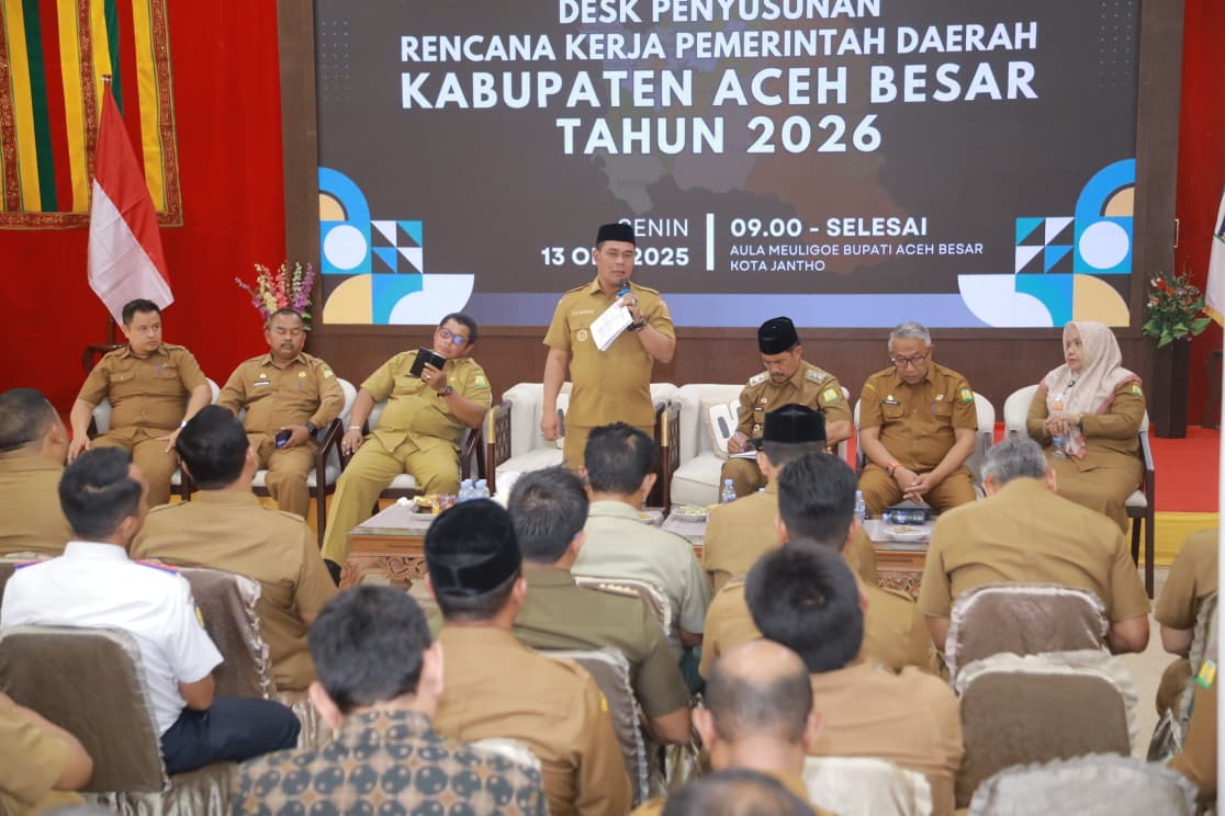 Hal itu disampaikan Bupati Muharram Idris (Syech Muharram) saat membuka Presentasi Renja Organisasi Perangkat Daerah (OPD) 2026 di Meuligo Bupati Aceh Besar, Senin (13/10/2025).