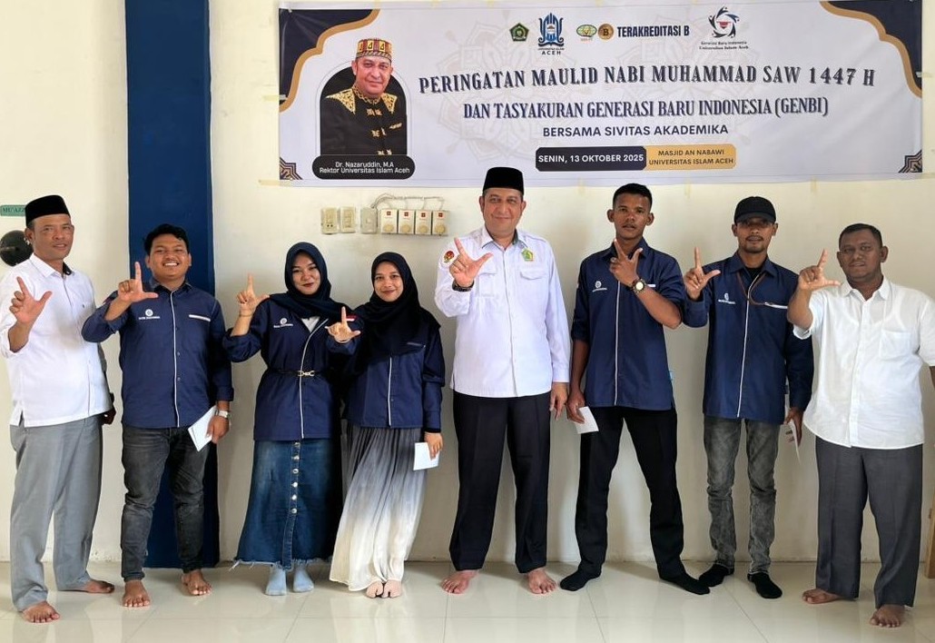 Bireuen. RU – Generasi Baru Indonesia (GenBI) Komisariat Universitas Islam Aceh (UIA) menyelenggarakan peringatan Maulid Nabi Muhammad SAW 1447 H yang dirangkai dengan acara tasyakuran di Masjid Nabawi UIA, Senin (13/10/2025).