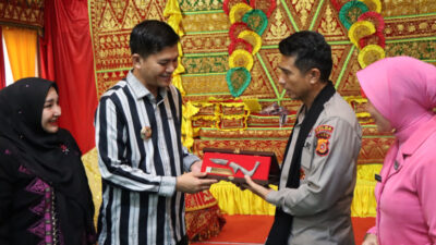 Sebagai bentuk penghargaan, Bupati menyerahkan cendera mata berupa rencong, simbol keberanian dan kehormatan masyarakat Aceh.