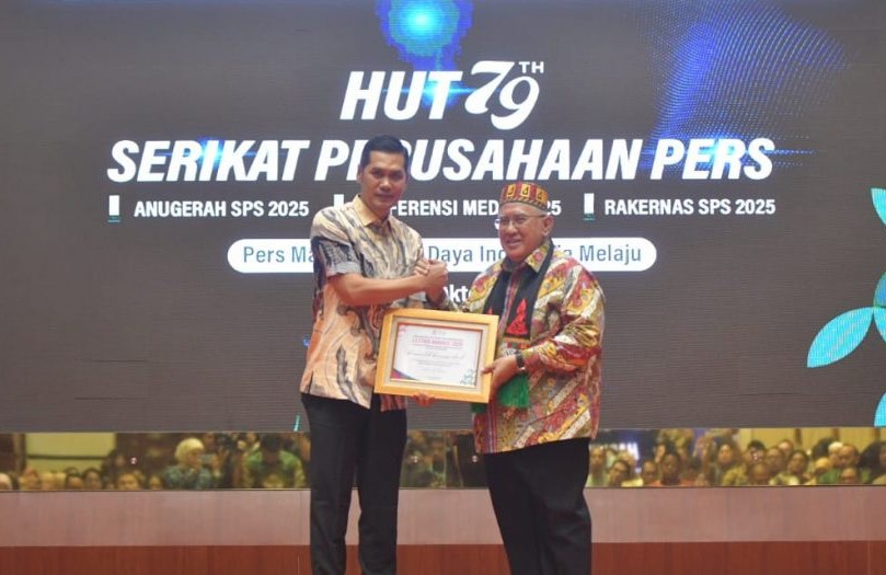 Banda Aceh. RU – Pemerintah Aceh menerima Lontar Awards dan Lestari Awards 2025 dari Serikat Perusahaan Pers (SPS) pada malam penganugerahan di Anjong Mon Mata, Banda Aceh, Senin (20/10/2025) malam.