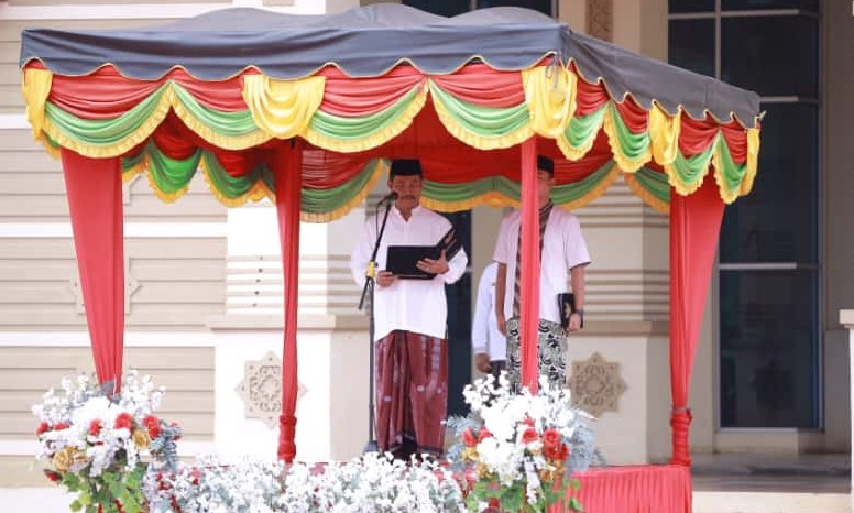 Aceh Besar. RU – Wakil Bupati Aceh Besar Drs. H. Syukri memimpin upacara peringatan Hari Santri 2025 di halaman Kantor Bupati Aceh Besar, Rabu (22/10/2025).
