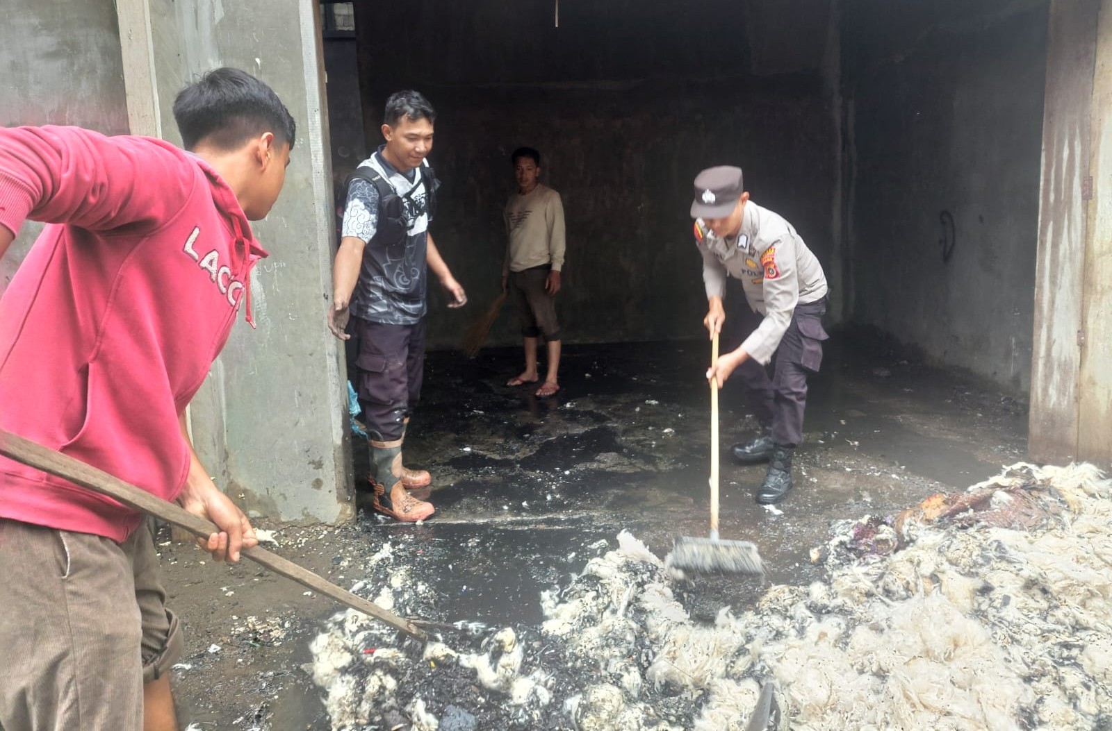 Setelah api padam, petugas TNI-Polri, Damkar, serta warga membantu membersihkan sisa material.(*)