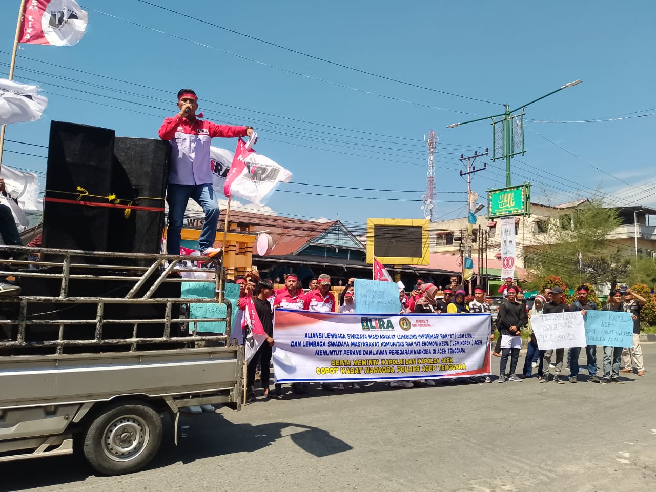 Ketua LSM Lira Aceh Tenggara, Fajriansyah, dalam orasinya menyebut dugaan tangkap lepas tersebut mencoreng citra kepolisian dan melemahkan semangat pemberantasan narkoba di daerah.