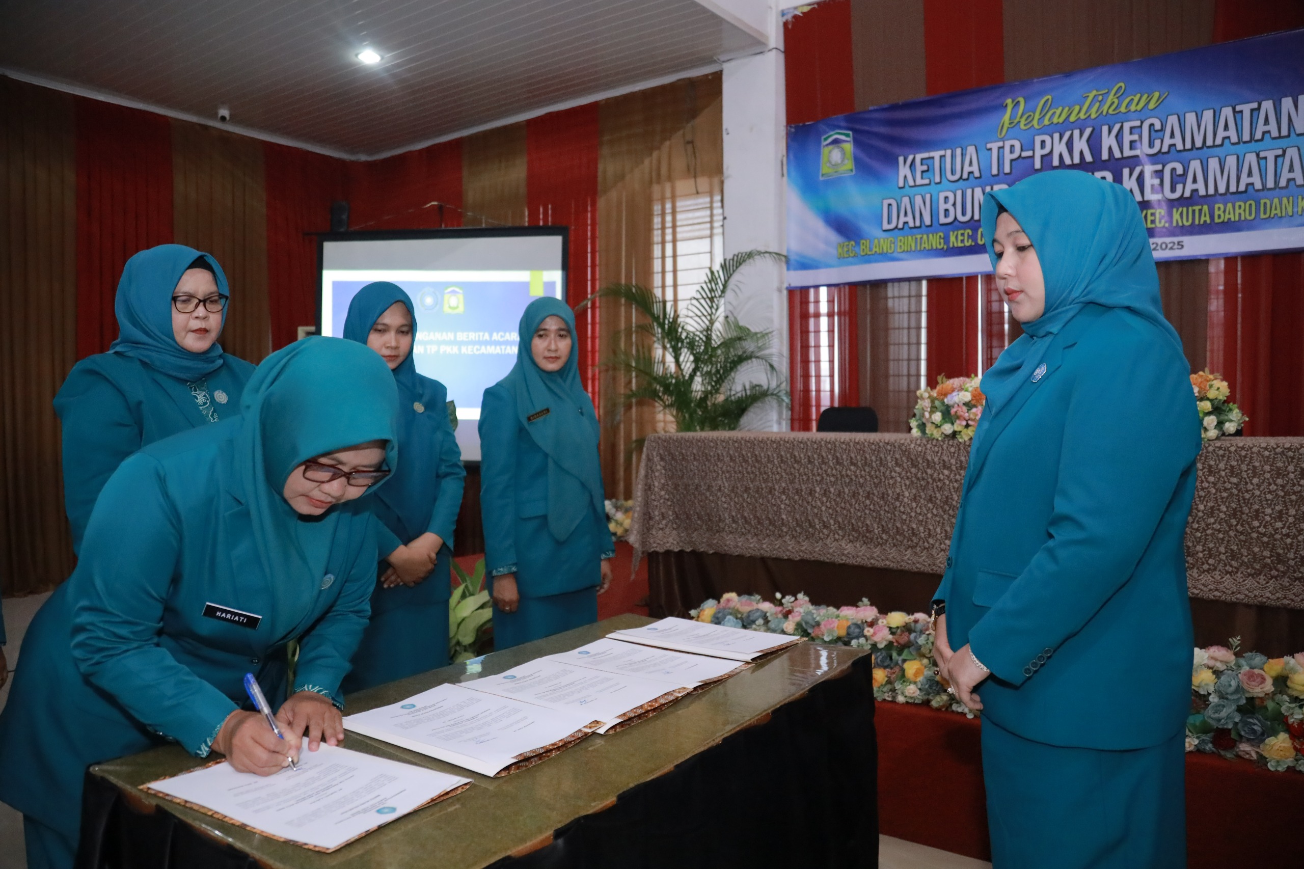 Lima Ketua TP PKK yang dilantik masing-masing juga menjabat sebagai Bunda PAUD, yakni Bidasari SE Ak (Blang Bintang), Mariana (Darul Kamal), Mardiana SE (Kuta Cot Glie), Afriani SPdI (Lhoknga), dan Hariati Amd Keb (Kuta Baro).
