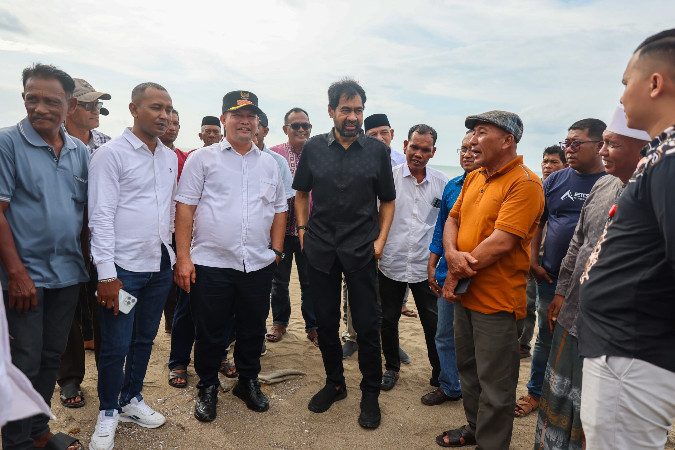 Aceh Utara. RU – Gubernur Aceh Muzakir Manaf (Mualem) meninjau permukiman warga yang tergerus abrasi di Gampong Lhok Puuk, Kecamatan Seunuddon, Aceh Utara, Minggu (16/11/2025).