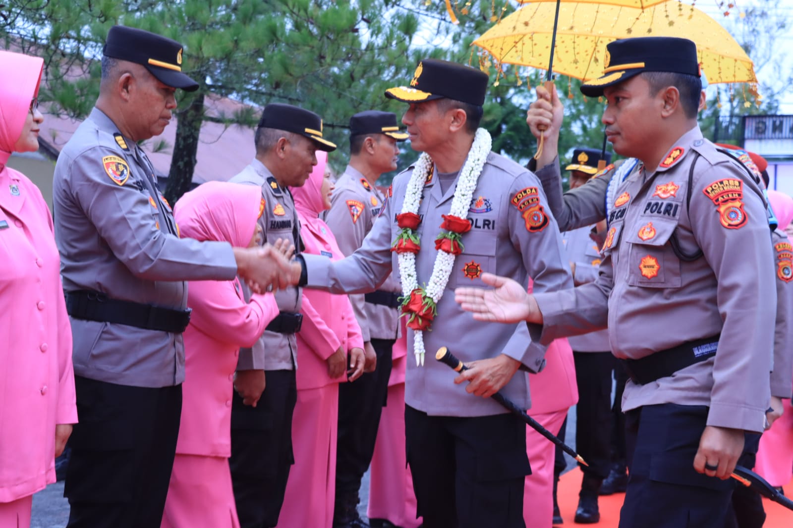 Kapolres Bener Meriah AKBP Aris Cai Dwi Susanto, Forkopimda, Bhayangkari, dan seluruh personel menyambut kedatangan rombongan yang turut diisi Wakapolda Aceh, Ketua Bhayangkari Daerah, Karo Ops, serta Dirintelkam.