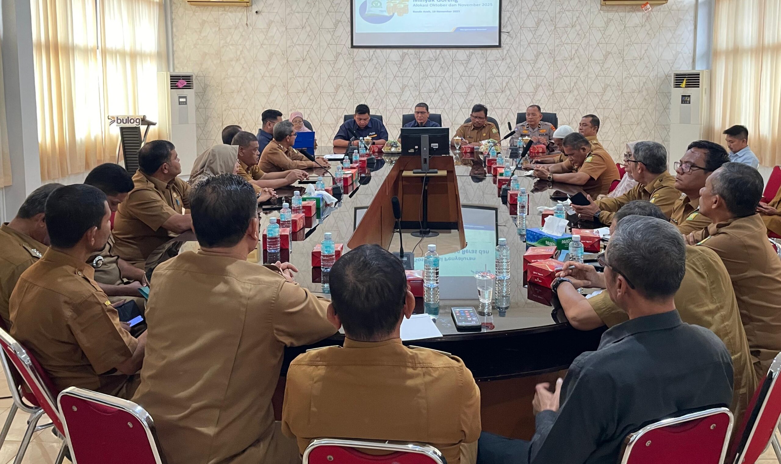 Banda Aceh. RU – Perum Bulog Kanwil Aceh menggelar rapat dan sosialisasi Penyaluran Bantuan Pangan (PBP) beras dan minyak goreng untuk alokasi Oktober–November 2025 di Aula Kantor Bulog Aceh, Selasa (18/11/2025).