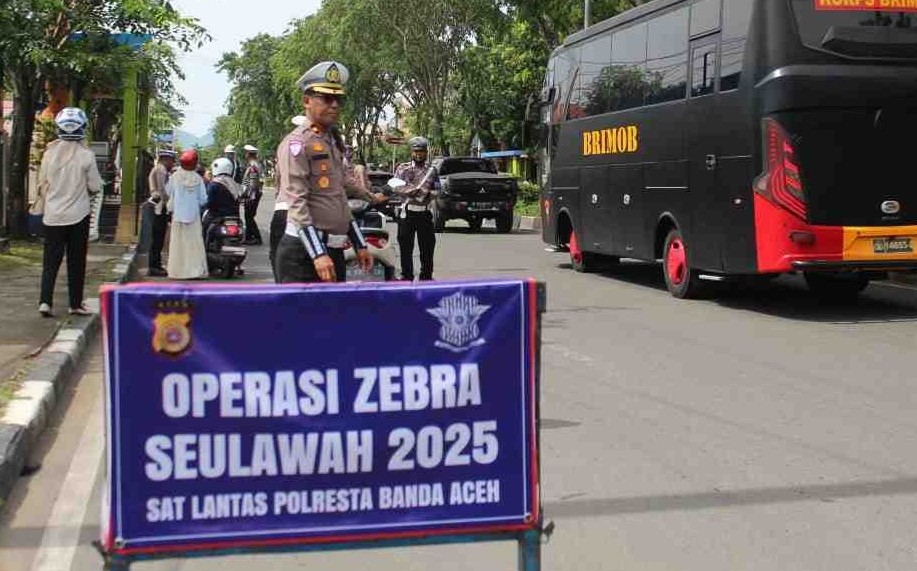 Banda Aceh. RU – Satuan Lalu Lintas Polresta Banda Aceh melanjutkan Operasi Zebra Seulawah 2025 memasuki hari kedua, Selasa (18/11/2025), dengan lokasi penindakan dipusatkan di depan Taman Budaya.