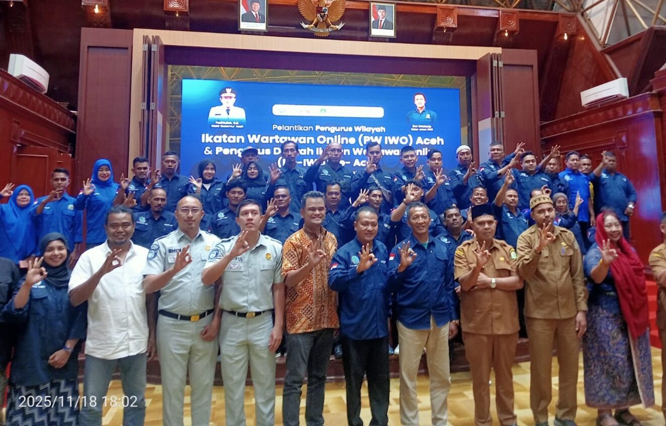 Banda Aceh. RU – Kepengurusan Ikatan Wartawan Online (IWO) Provinsi Aceh periode 2025–2029 resmi dikukuhkan di Anjong Mon Mata, Banda Aceh, Selasa (18/11/2025).