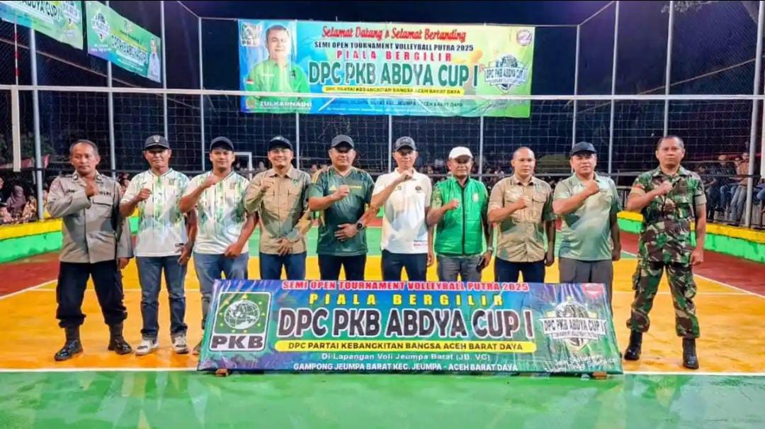 Blangpidie. RU – Turnamen voli semi terbuka Piala Bergilir yang diselenggarakan oleh Dewan Pimpinan Cabang Partai Kebangkitan Bangsa (DPC PKB) Aceh Barat Daya (Abdya) resmi dimulai di lapangan voli Gampong Jeumpa Barat, Kecamatan Jeumpa, pada Jumat, 21 November 2025 malam.