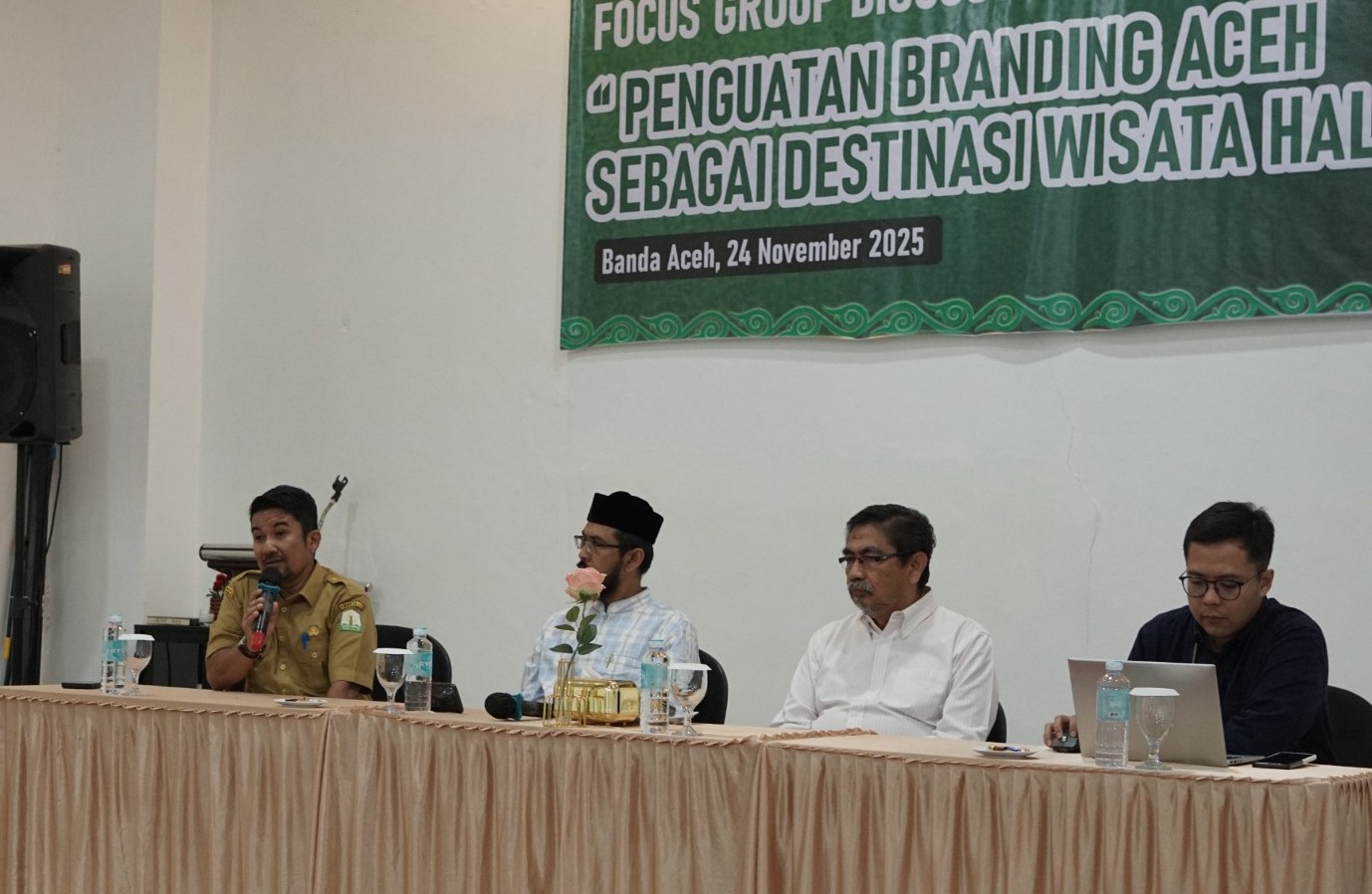 Banda Aceh. RU – Dinas Kebudayaan dan Pariwisata Aceh menggelar Focus Group Discussion (FGD) bertema “Penguatan Branding Aceh sebagai Destinasi Wisata Halal” di Grand Aceh Hotel, Senin (24/11/2025).