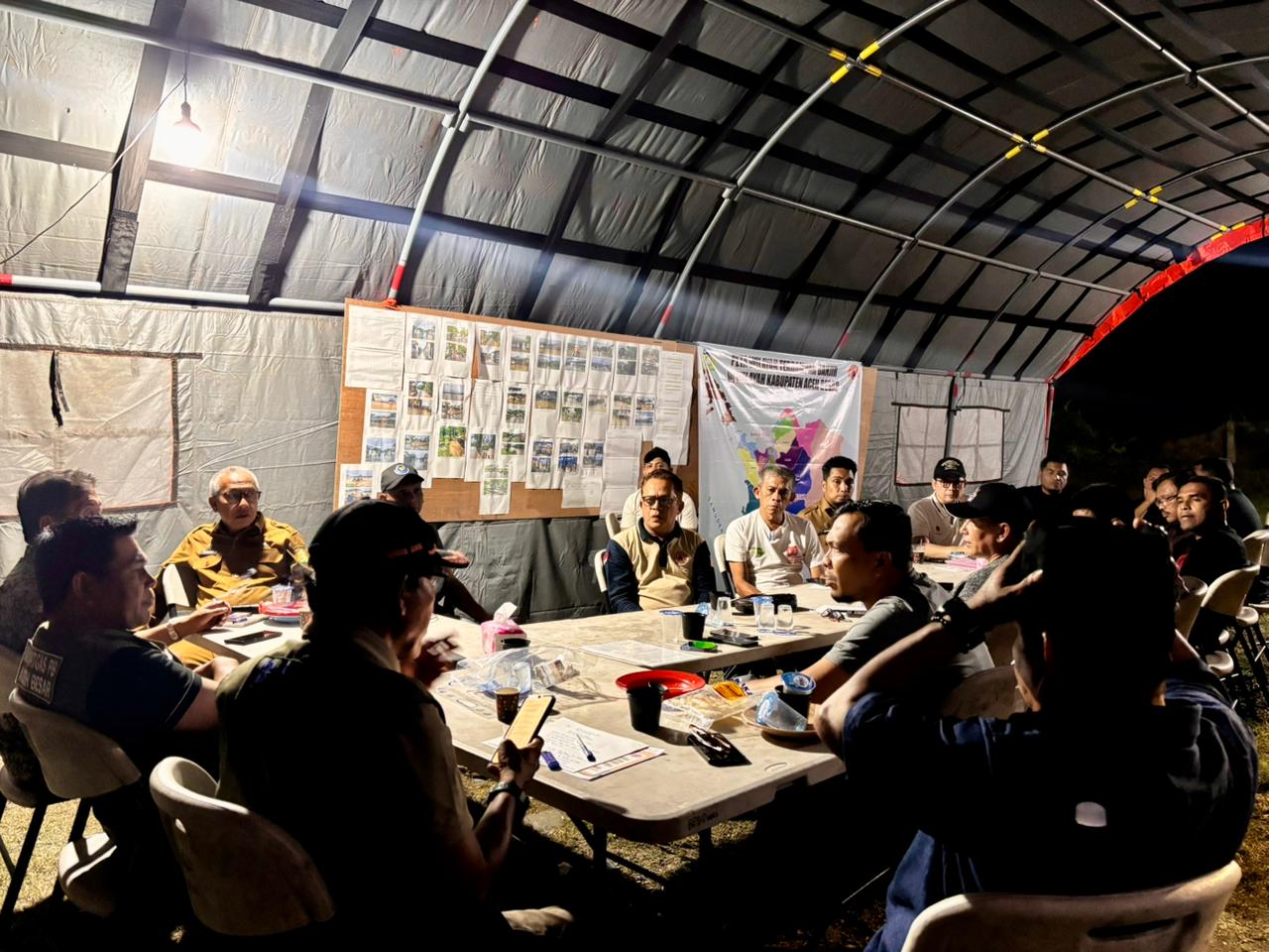 Aceh Besar. RU – Pemerintah Kabupaten Aceh Besar menggelar rapat evaluasi dan koordinasi penanganan bencana di Posko BPBD Sibreh Keumude, Kecamatan Sukamakmur, Senin (01/12/2025) malam, sebagai respons cuaca ekstrem yang dipicu bibit Siklon Tropis 95B.