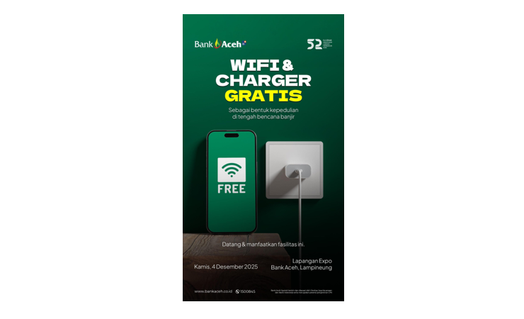 Banda Aceh. RU – Bank Aceh Syariah membuka “Posko Digital” berupa layanan WiFi dan pengisian daya gratis untuk membantu masyarakat terdampak banjir tetap terhubung secara daring, khususnya mahasiswa yang mengalami gangguan listrik dan jaringan.