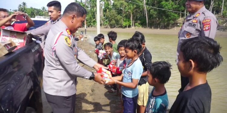 Aceh Utara. RU – Pemulihan psikologis bagi warga terdampak banjir, khususnya anak-anak, kembali dilakukan Kapolres Lhokseumawe AKBP Dr. Ahzan pada Senin (08/12/2025) di Sawang.