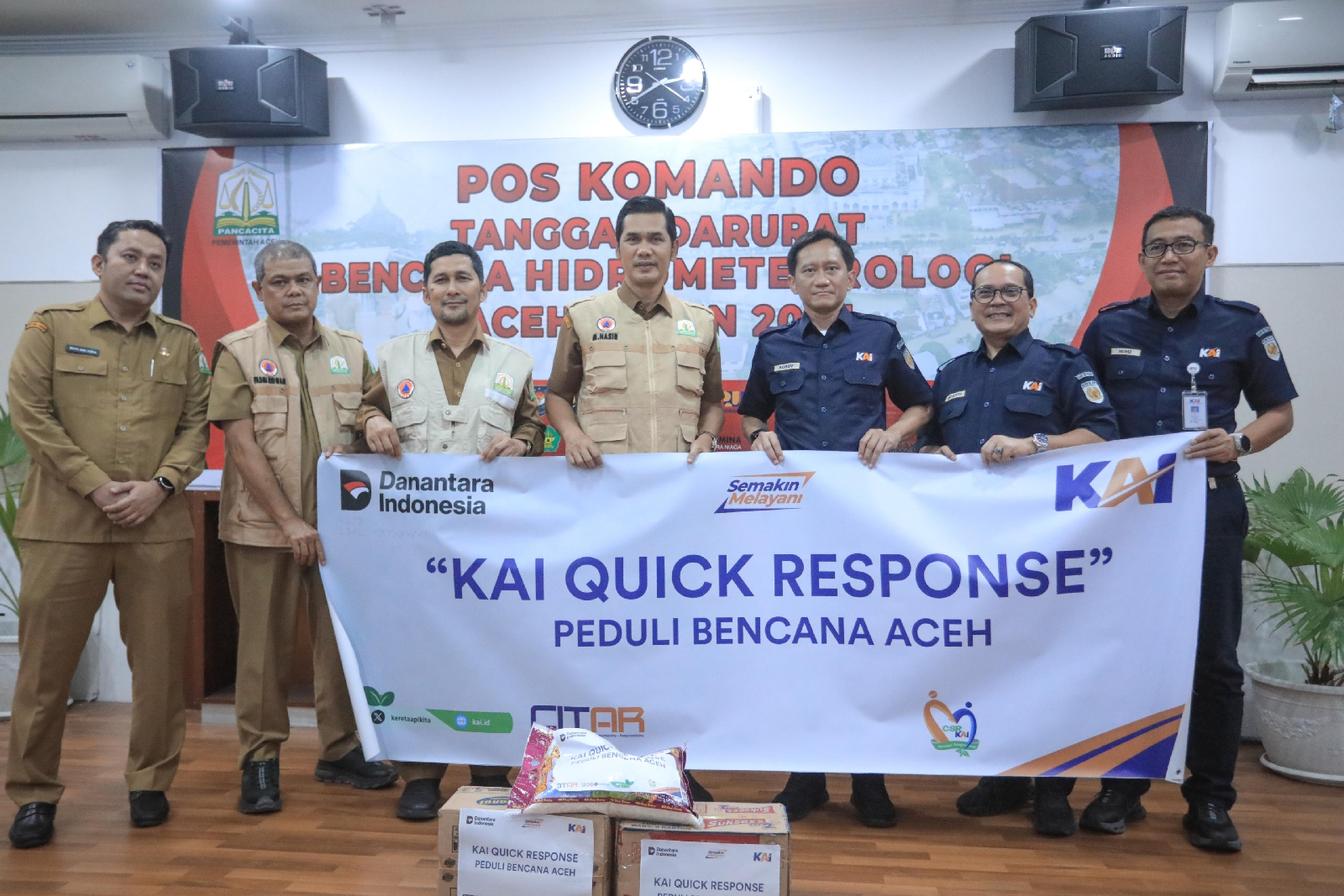 Banda Aceh. RU – PT Kereta Api Indonesia (KAI) menyalurkan bantuan kemanusiaan bagi warga terdampak banjir dan longsor melalui program CSR KAI Quick Response Peduli Bencana.