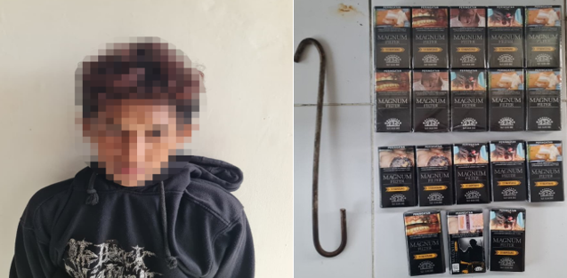 Petugas menyita satu jaket hitam, satu bilah besi berukuran 10 milimeter, serta 28 bungkus rokok Magnum.