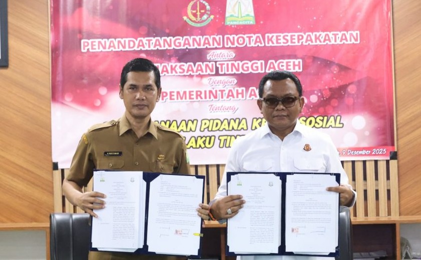Banda Aceh. RU – Pemerintah Aceh bersama Kejaksaan Tinggi Aceh menandatangani Nota Kesepakatan pelaksanaan pidana kerja sosial bagi pelaku tindak pidana, Selasa (09/12/2025).