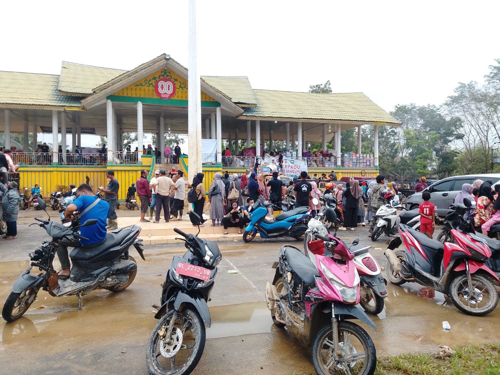 Kualasimpang. RU – Ratusan warga korban banjir dari berbagai Kecamatan datang berbondong-bondong mencari dan memgbil bantuan sembako di Posko induk yang ditempatkan di tribun Setdakab Aceh Tamiang, Selasa (09/12/2025).