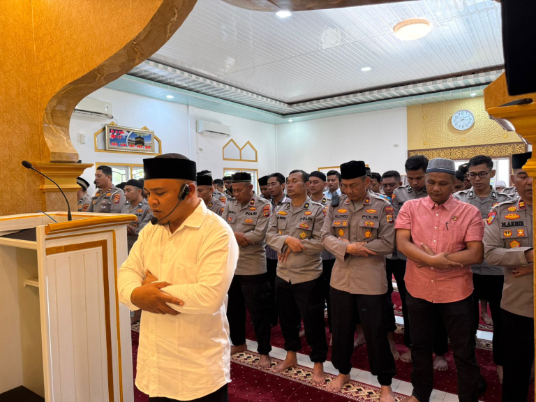 Aceh Selatan. RU – Polres Aceh Selatan Polda Aceh melaksanakan Sholat Ghaib berjamaah di Masjid Babuttaqwa setelah apel pagi, Selasa (09/12/2025).