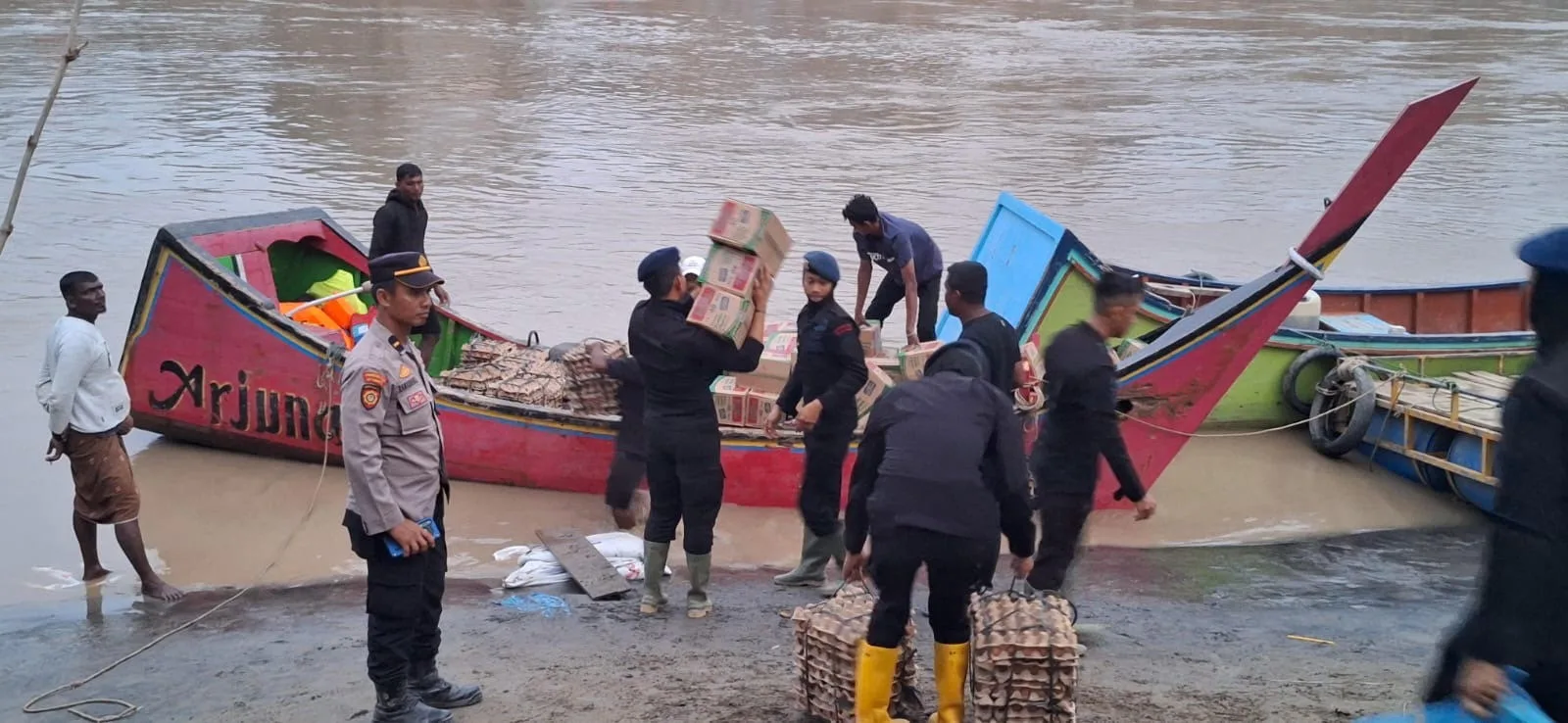 Dengan dukungan personel Brimob, Gegana, serta Airud Polda Aceh, penyaluran melalui alur sungai Kuta Blang berjalan lancar.