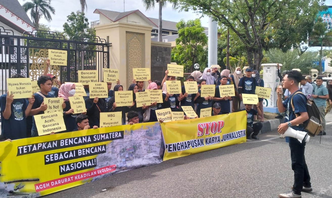 Selain mendesak penetapan bencana nasional, massa aksi juga menuntut peningkatan mobilisasi sumber daya nasional, percepatan audit ekologi dan tata ruang, penyusunan rencana pemulihan berkeadilan, pemenuhan hak asasi korban, serta mengecam dugaan tindakan represif oknum TNI terhadap jurnalis yang tengah menjalankan tugas peliputan.(R015)