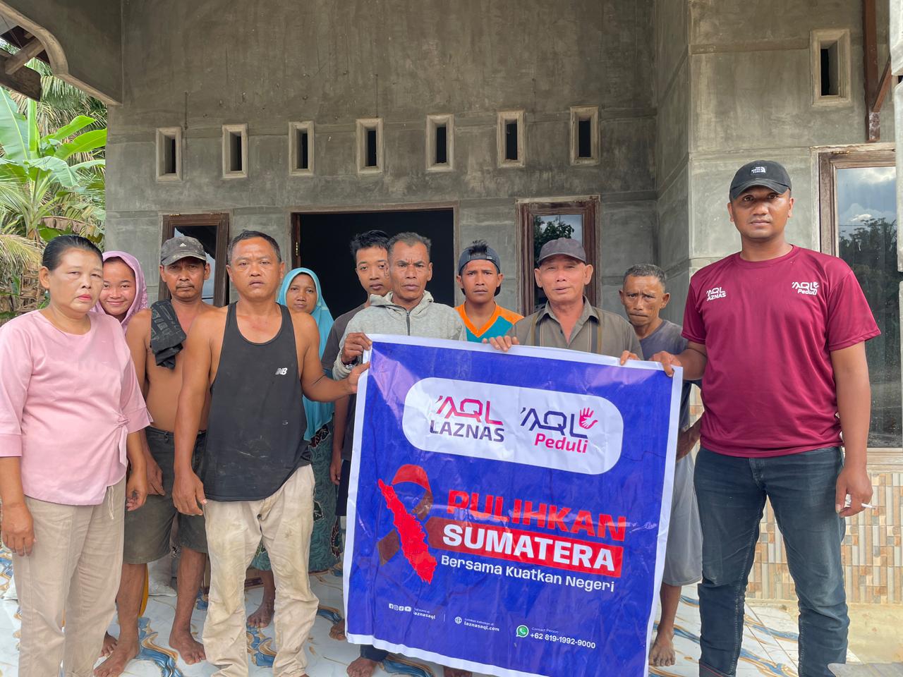 Kualasimpang. RU – Kedatangan Laznas AQL Peduli mensuplai Logistik kebutuhan pangan, pakaian baru dan pakaian layak pakai serta obat-obatan disambut dengan suka cita oleh puluhan warga korban terdampak langsung bencana banjir di Dusun Sumber Rejo, Desa Sumber Makmur Kecamatan Tenggulun Kabupaten Aceh Tamiang, Sabtu (20/12/2025).
