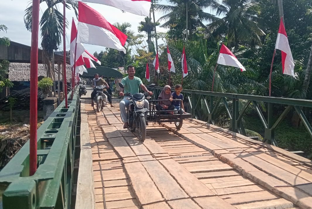 Jembatan darurat pada ruas jalan Peudada tembus Bireuen tersebut selesai dibangun pada Minggu (21/12/2025) untuk menggantikan jembatan permanen yang rusak berat akibat banjir.