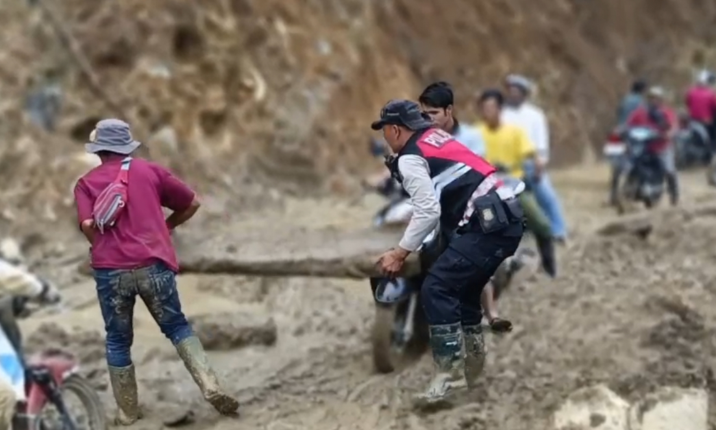 “Personel Sat Samapta turun langsung ke lokasi untuk membantu warga yang kesulitan melintasi jalan akibat material longsor. Kami mendorong kereta warga serta membersihkan material longsor agar akses jalan dapat dilalui,” ujar Zulkarnael.