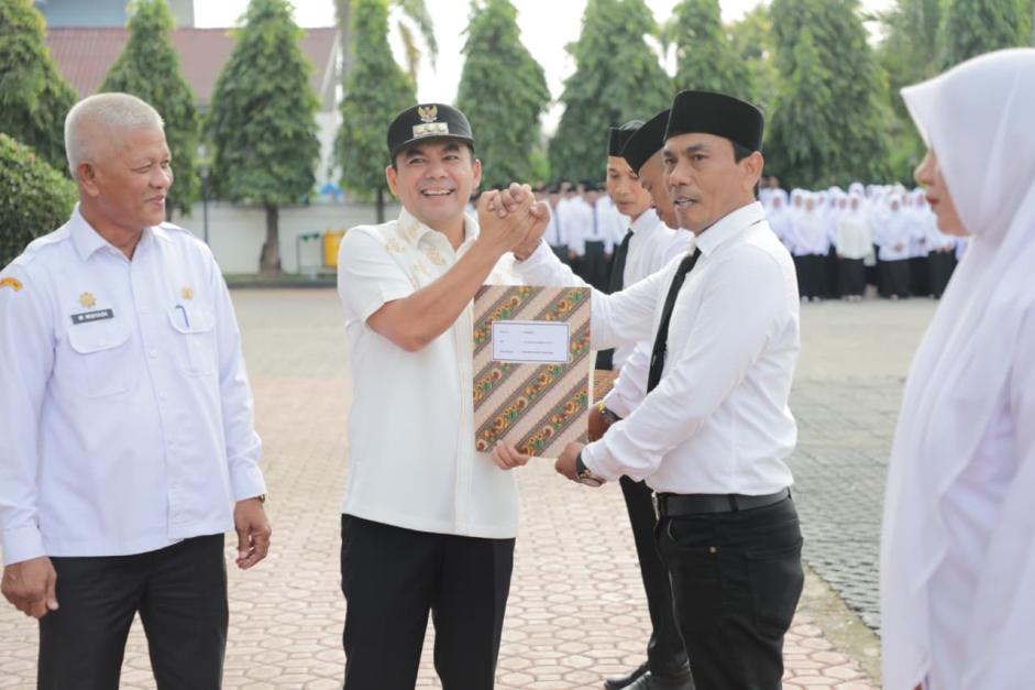 Dalam arahannya, Sayuti Abubakar menekankan pentingnya dedikasi, disiplin, dan integritas aparatur dalam melayani masyarakat.