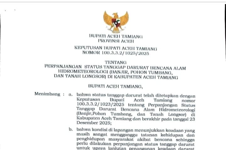 Bupati Aceh Tamiang, Armia Pahmi, menetapkan perpanjangan status ini terhitung mulai tanggal 24 Desember 2025 hingga 6 Januari 2026.