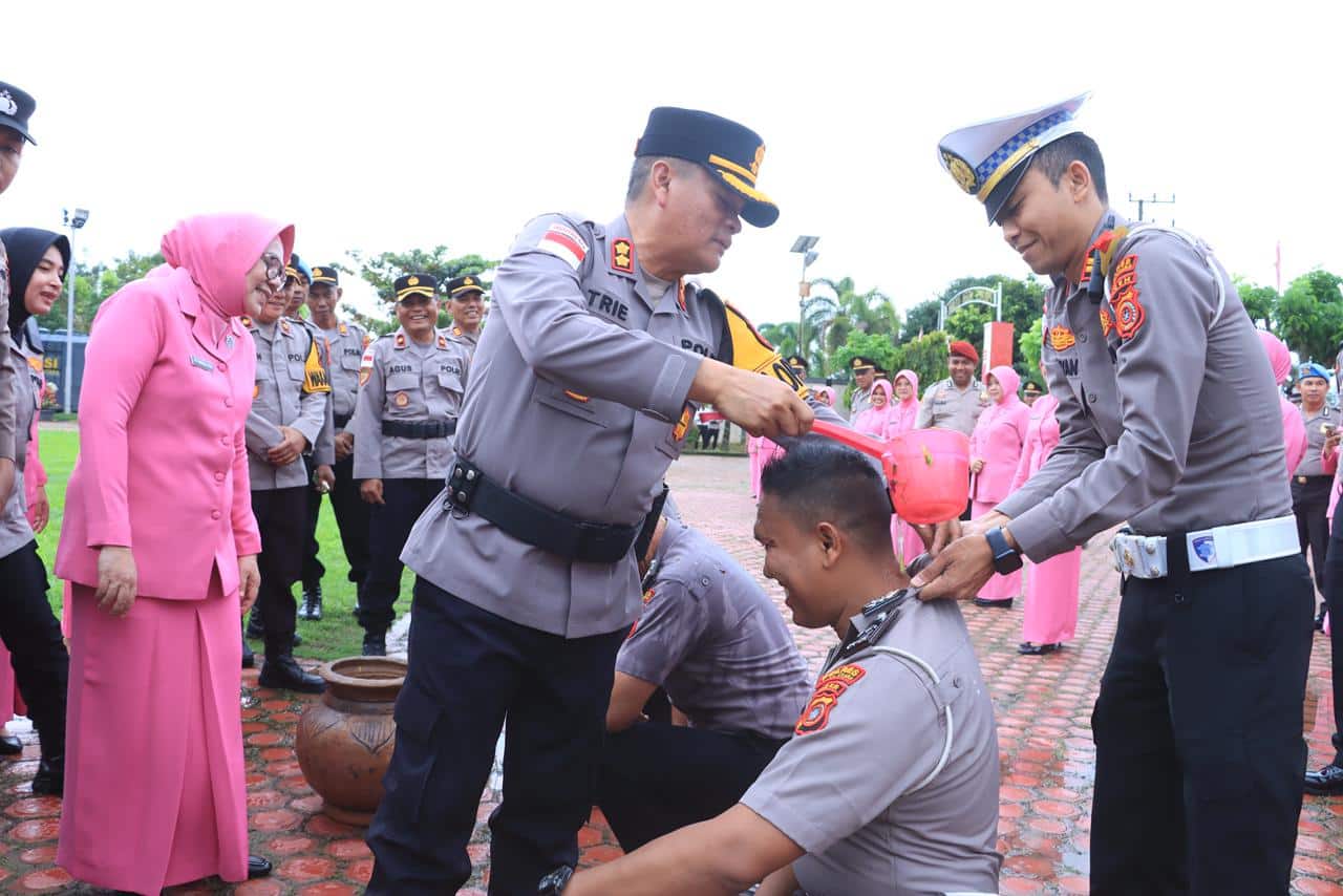 Usai upacara, prosesi siraman air kembang dan tradisi water canon digelar sebagai simbol rasa syukur, penyucian diri, serta pengingat untuk meningkatkan disiplin, profesionalisme, dan tanggung jawab seiring bertambahnya pangkat.(*)