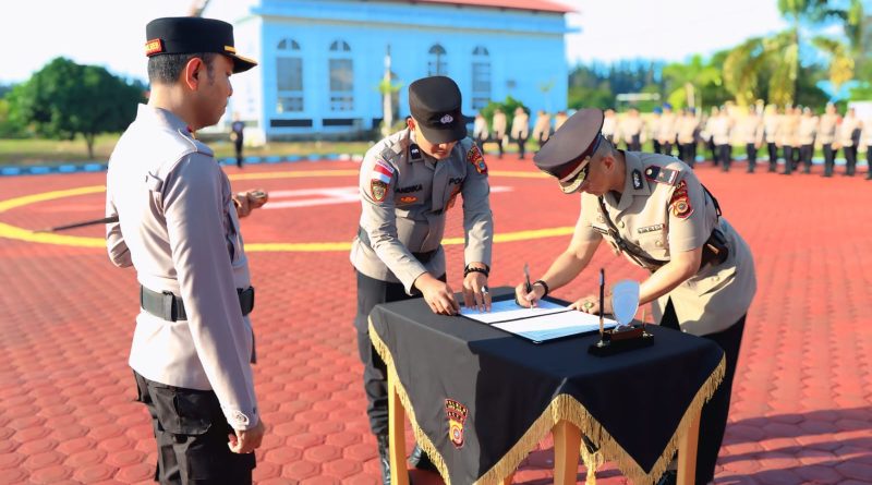 Aceh Jaya. RU – Kapolres Aceh Jaya AKBP Zulfa Renaldo, memimpin upacara serah terima jabatan Wakapolres, di Mapolres setempat, Selasa (06/01/2026).