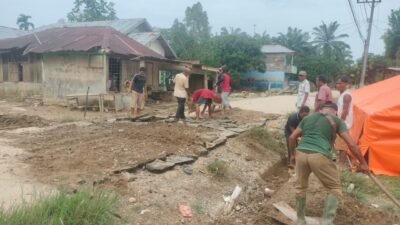 Kualasimpang. RU – Kondisi sebagian wilayah Kampung Tupah, Kecamatan Karang Baru, Kabupaten Aceh Tamiang, masih porak-poranda pascabanjir bandang yang terjadi pada akhir November 2025.