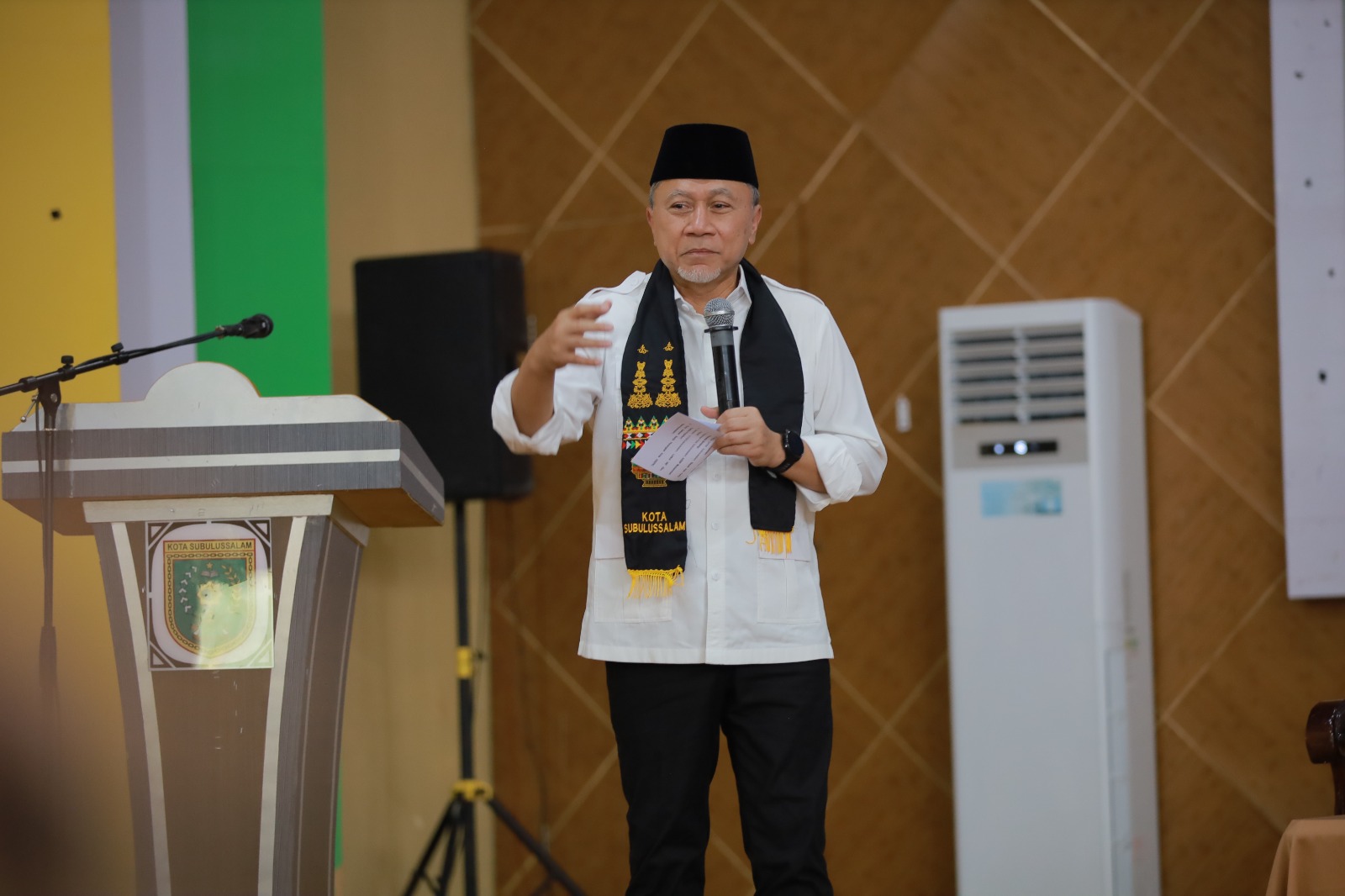 Subulussalam. RU – Menteri Koordinator Bidang Pangan Zulkifli Hasan atau Zulhas melontarkan candaan yang mengundang tawa saat berkunjung ke Kota Subulussalam, Kamis (08/01/2026).