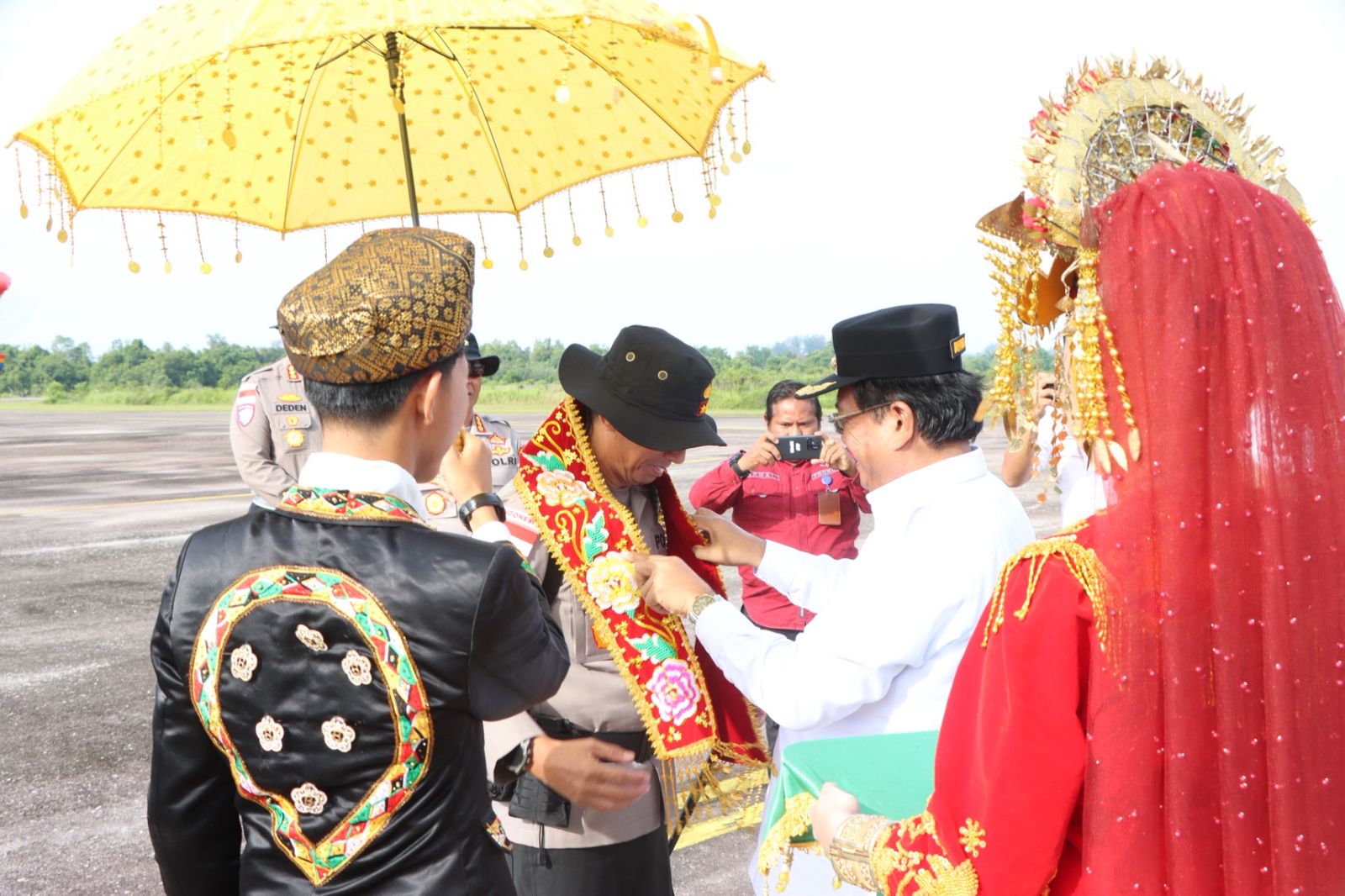 Rombongan tiba di Bandara Syekh Hamzah Fansyuri dan disambut Kapolres Aceh Singkil AKBP Joko Triyono bersama unsur Forkopimda.