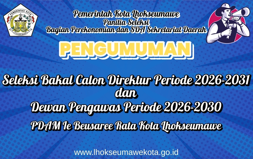 Lhokseumawe. RU – Pemerintah Kota Lhokseumawe melalui Panitia Seleksi membuka pendaftaran calon Direktur dan Dewan Pengawas definitif PDAM Ie Beusaree Rata menyusul kekosongan jabatan pada dua posisi strategis tersebut.