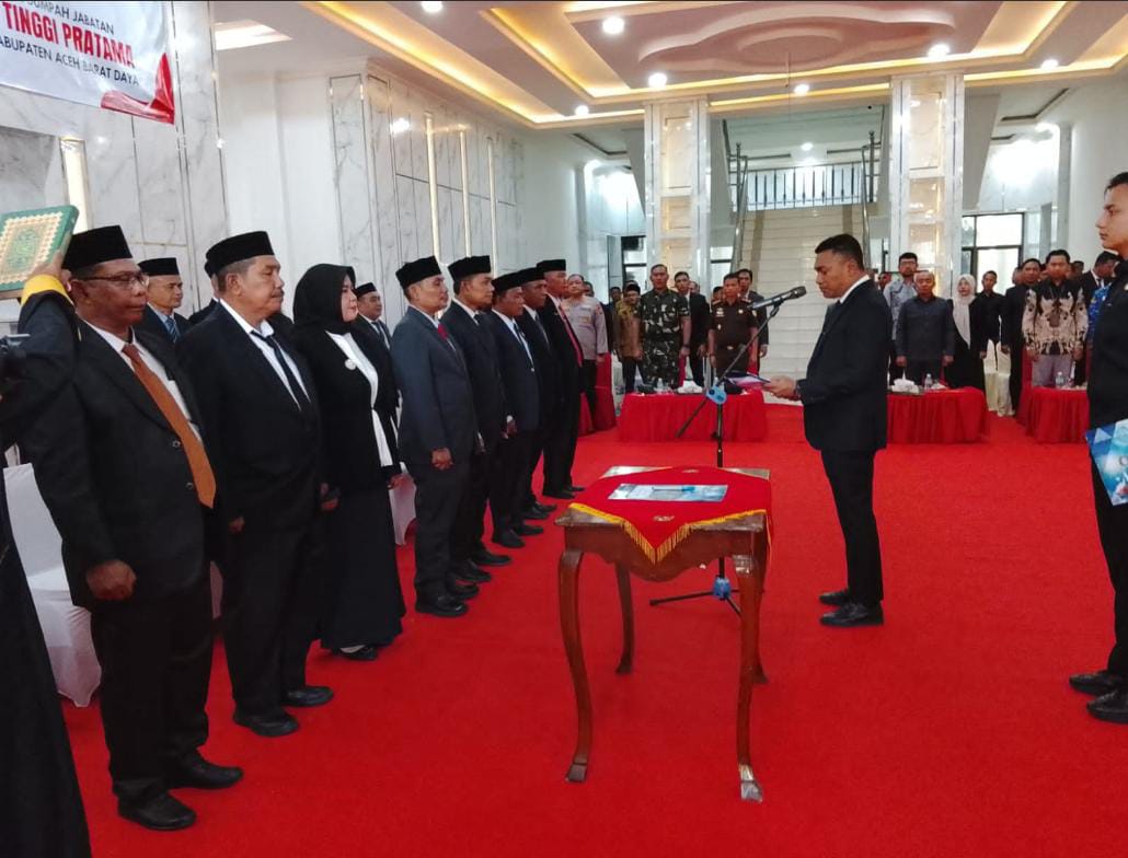 Blangpidie. RU – Bupati Aceh Barat Daya (Abdya) Safaruddin melantik dan mengambil sumpah jabatan 15 pejabat pimpinan tinggi pratama di lingkungan Pemerintah Kabupaten Abdya, Kamis (29/01/2026).