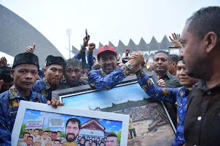 Ketika Gubernur yang akrab disapa Mualem hadir di tengah massa, sorak dukungan bergema bersahut dengan derasnya hujan.