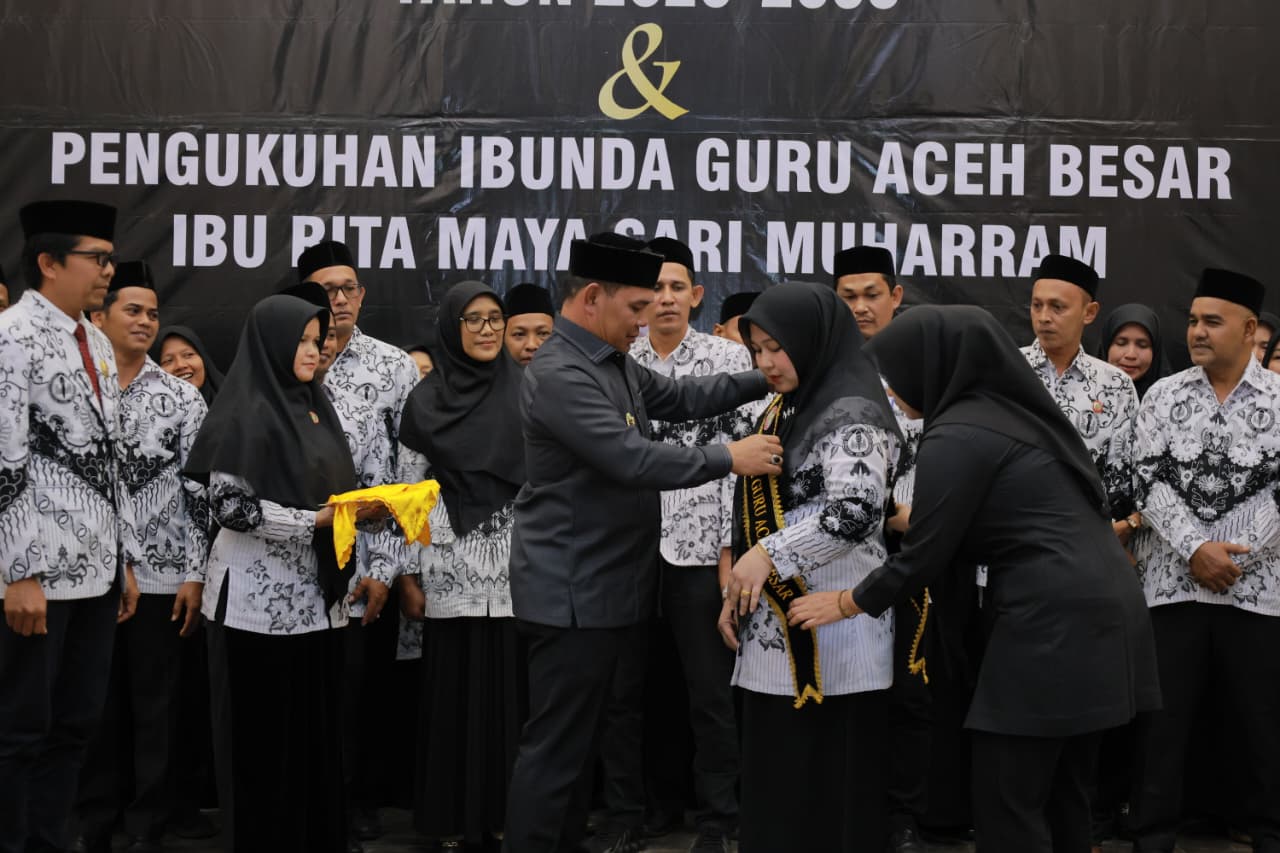 Pada kesempatan itu, Ketua TP-PKK Aceh Besar, Rita Mayasari, dikukuhkan sebagai Bunda Guru oleh Ketua PGRI Aceh, Al Munzir.