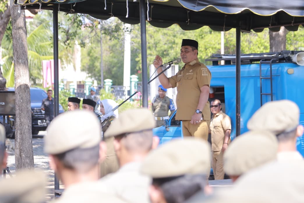 Dalam sambutannya, Bupati menekankan pentingnya disiplin, profesionalisme, dan penertiban bermartabat.