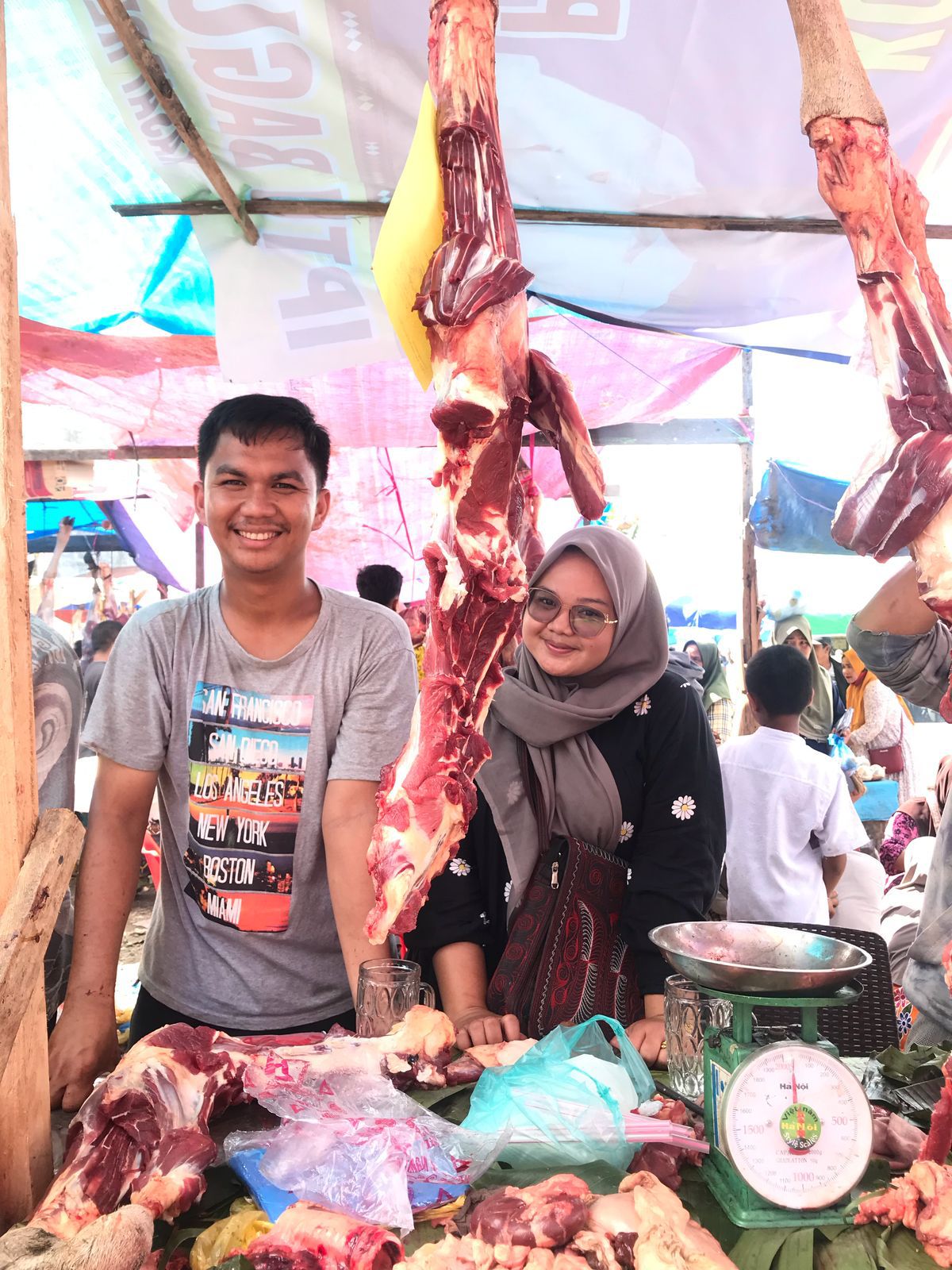 Hairul Sukandi, salah seorang pedagang daging di pasar tersebut, mengatakan lonjakan pembeli sudah terasa sejak pagi hari.