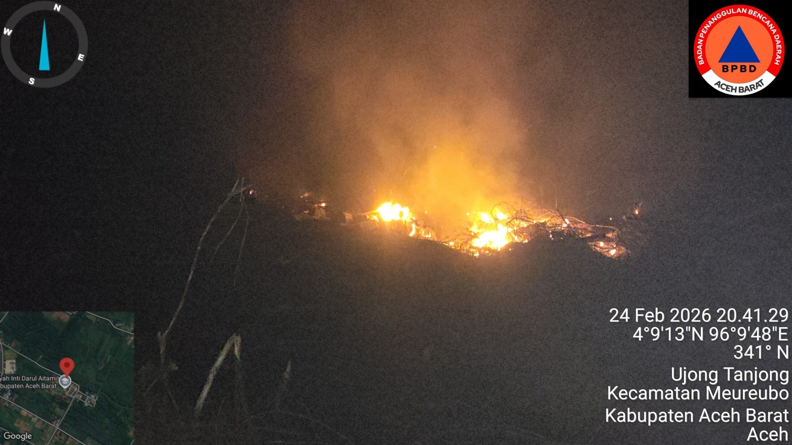 Aceh Barat. RU – Kebakaran lahan dilaporkan terjadi di Desa Ujong Tanjung, Kecamatan Meureubo, Aceh Barat, Selasa, 24 Februari 2026 malam, tepat di belakang Dayah Darul Itami.